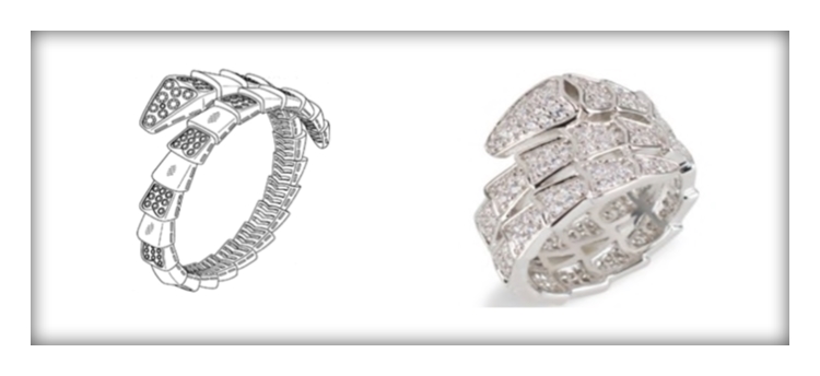 In the wake of their settlement agreement, the two brands managed to co-exist in peace until June 2019 when Bulgari became aware that KJL was selling a ring that is “substantially the same as (its) design patent – protected (Serpenti)” design.