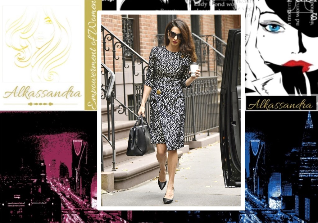 This weekend in New York City, Clooney was back at it again, this time proving that a good dress can mean business. she stepped out wearing a black and white floral-printed wrap dress that had quarter-length sleeves, a round neck, and a large gold button as a focal point. The look struck the right balance of simplicity with fun, stylish details. The accessories – leather top-handle bag, pointed pumps, and signature oversized sunglasses – helped elevate the ensemble, too. So who needs suiting when going against the status quo looks this good?