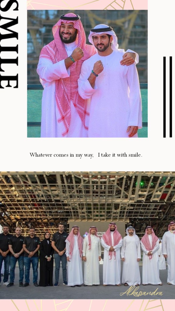 Sheikh Hamdan bin Mohammed and Prince Mohammed bin Salman were briefed about the different pavilions and stands that will be part of the event. They also visited Al Wasl Plaza, the heart of Expo 2020, spanning an area of 4.38 square kilometers, which will include many restaurants, fountains, and parks covered by a translucent 67-meter-tall domed trellis 130 metres in diameter. The trellis also serves as a 360-degree projection surface visible to visitors inside and outside.