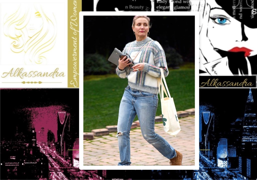 The 47-year-old actress was photographed leaving a friend’s house, wearing brown moccasins, jeans and a striped sweater. The star wore her blond hair pulled back and sported small hoop earrings. Diaz held her phone and sunglasses in one hand a tote bag draped over one arm.