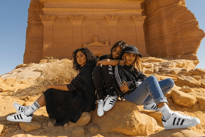 In celebration of the 50th anniversary of its iconic superstar sneakers, Adidas Originals decided to shoot its latest ‘Change is a Team Sport’ campaign in Saudi Arabia.