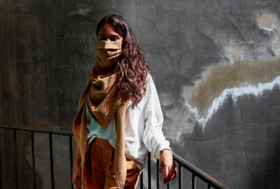 Brussels-based stylist Aude De Wolf has created a ‘scarf mask’ that uses linen, cashmere and other high-quality materials to combine mask with luxurious shawls.