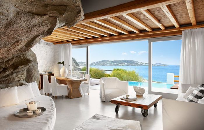 To the west of the island, the Brazilian top model has set his sights on the Cavo Tagoo Hotel. Facing the sea, the place is based on minimalist decoration with its rooms, suits and private villas all dressed in white. Famous for its pool filtring with the waves, there is also a Japanese restaurant ZUMA and an extraordinary SPA.