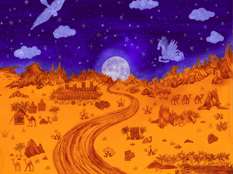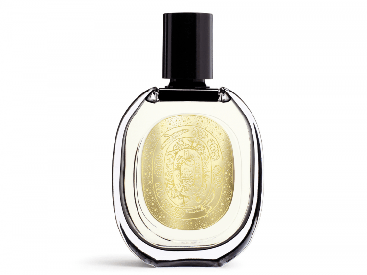 The bottle’s artwork is unmistakable Middle Eastern an etched illustration by Safia Ouares featuring an iconic Beduin landscape of desert dunes, date palms, a falcon and camels. Another special touch – the oval label is a glided gold, a different route from Diptyque’s usual black and white branding.