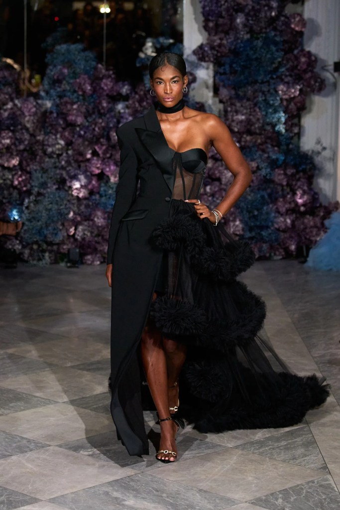 The collection, which consists of 56 looks, showcased Siriano’s signature flair for drama, elegance, and inclusivity. He opened with a series of all-black outfits that featured corsets, ribbons, and tailoring, evoking a sense of sophistication and mystery. He then transitioned to a parade of colorful and voluminous gowns, made of tule, silk, and brocade, that reflected the joy and fantasy of ballet. The models, who represented a diverse range of body types and genders, walked with confidence and grace, some even dancing and twirling on the runway.