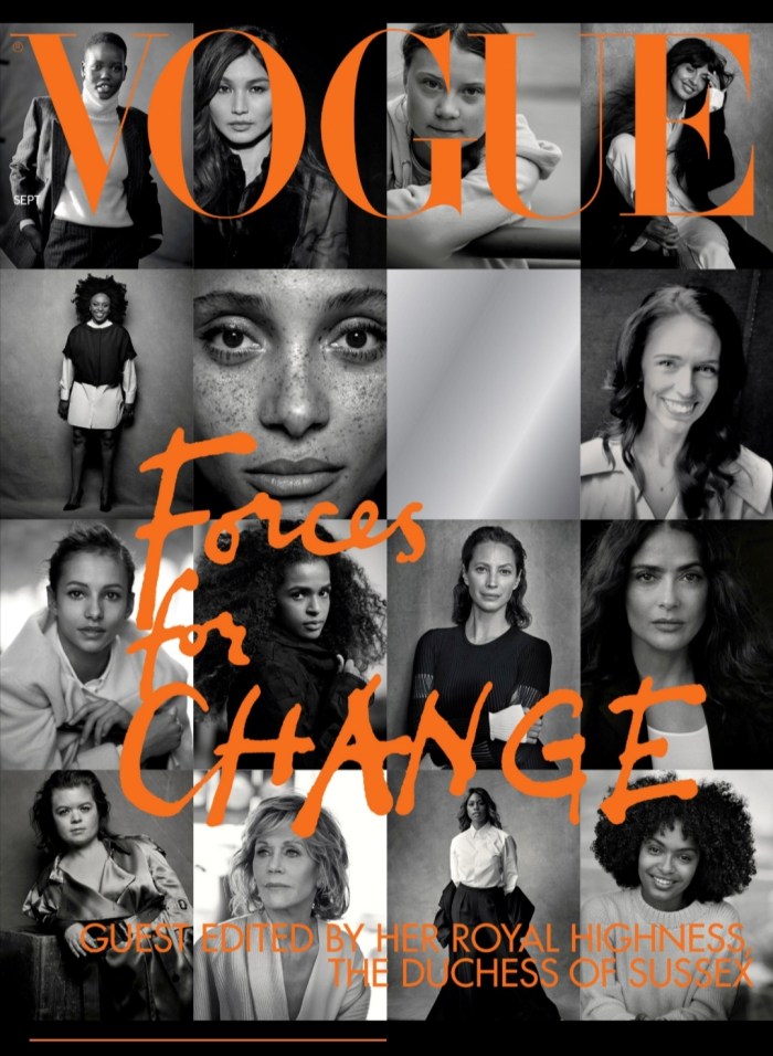 The Duchess of Sussex has guest edited British Vogue’s September issue, focusing on women who “break barriers”. The cover features 15 women, including teenage climate activist Greta Thunberg and New Zealand PM Jacinda Ardem. Meghan chose not to put herself on the cover, the magazine’s editor – in – chief Edward Enninful said, as she … Continue reading FASHION ISSUES | Meghan Guest Edits British Vogue’s September Issue